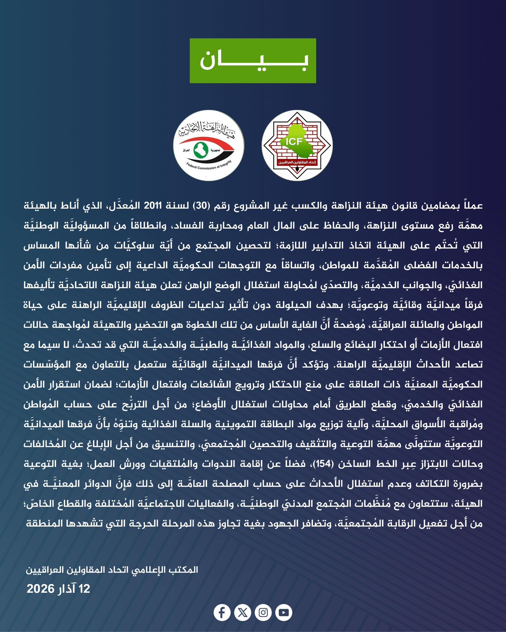 بغداد – المكتب الاعلامي التقى رئيس اتحاد المقاولين العراقيين والعرب الاستاذ علي فاخر السنافي بنقيب المحاسبين والمدققين العراقيين السيد جواد ...