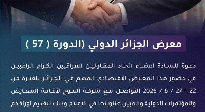 ابلغتنا سفارة الجمهورية الجزائرية في بغداد عن اقامة معرض الجزائر الدولي الدورة ( ٥٧ ) للفترة من ٢٢ – ٢٧ …