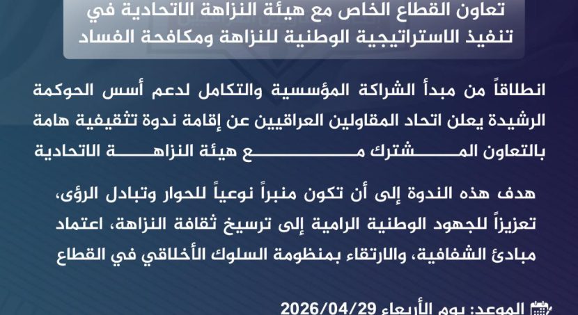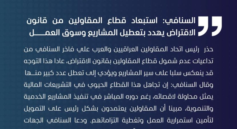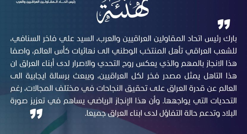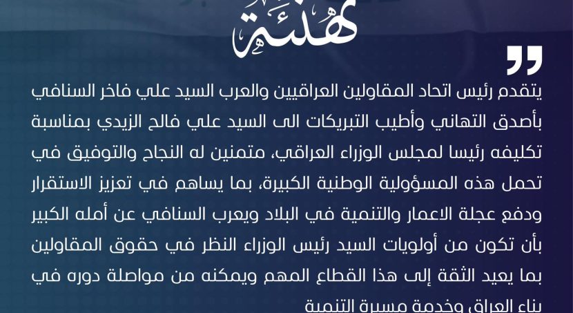 بغداد – المكتب الاعلامي التقى رئيس اتحاد المقاولين العراقيين والعرب الاستاذ علي فاخر السنافي بنقيب المحاسبين والمدققين العراقيين السيد جواد …